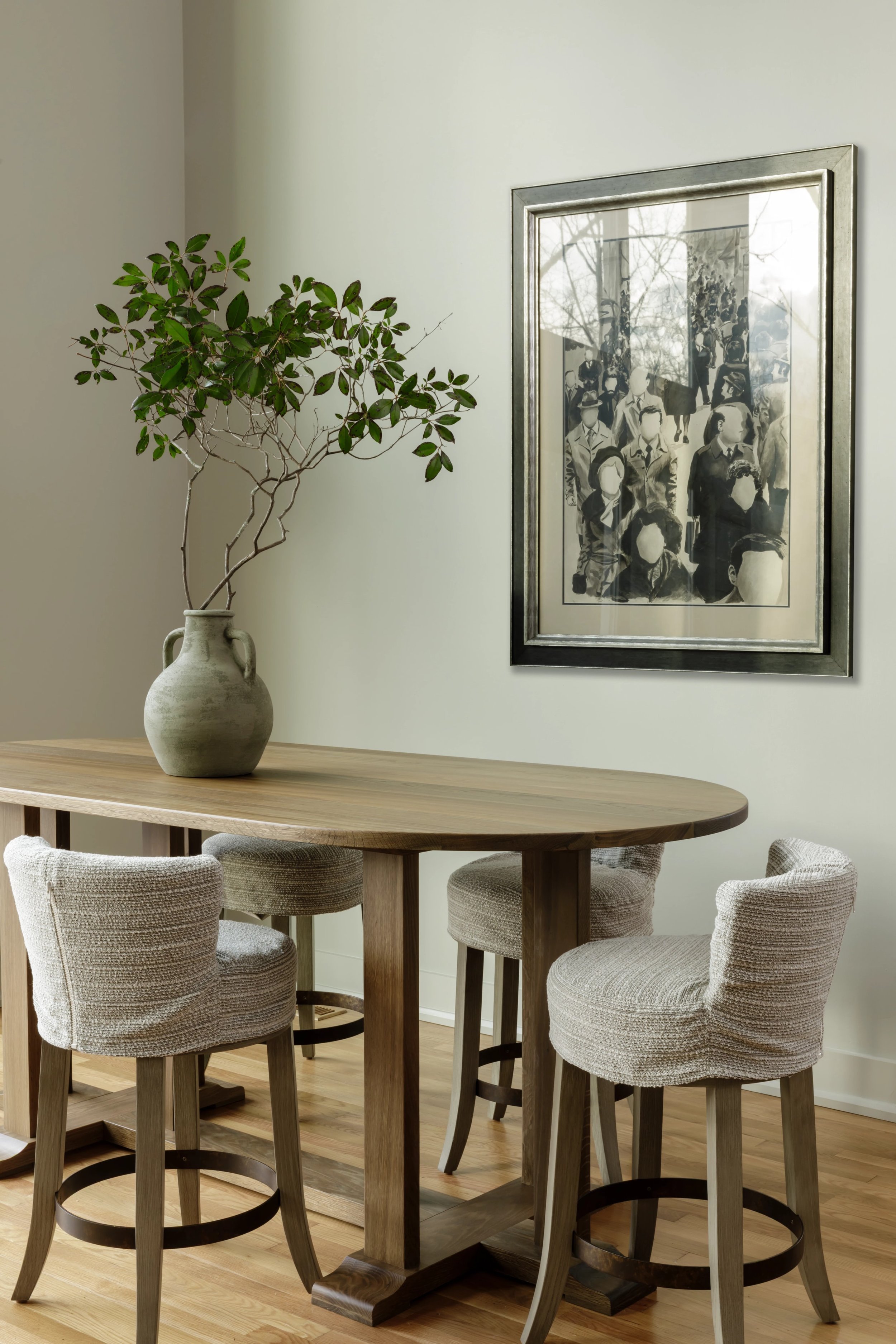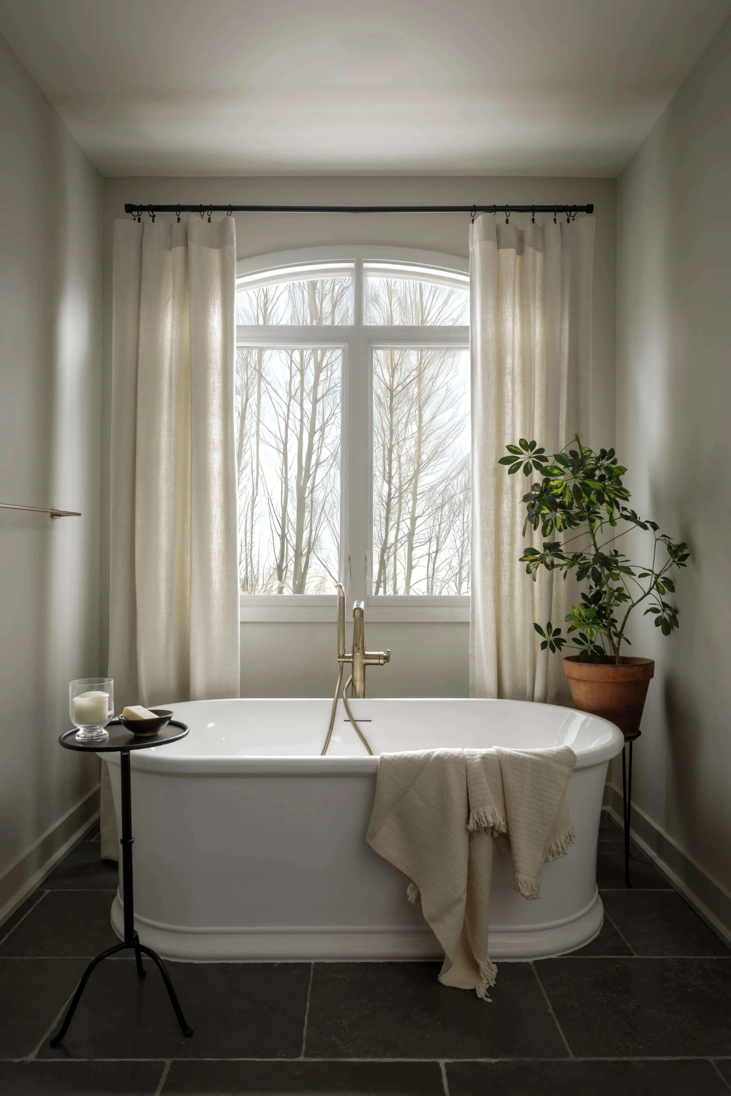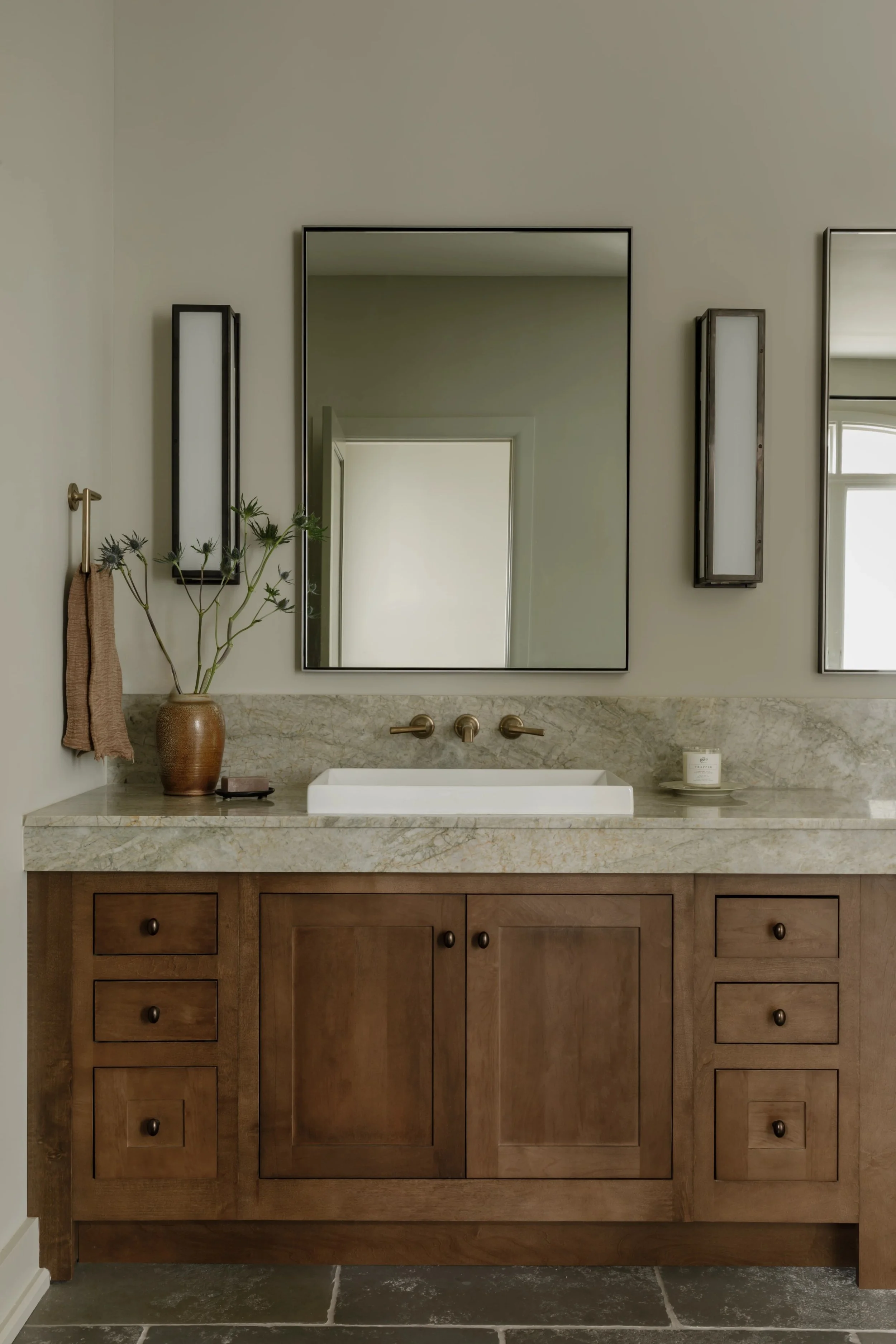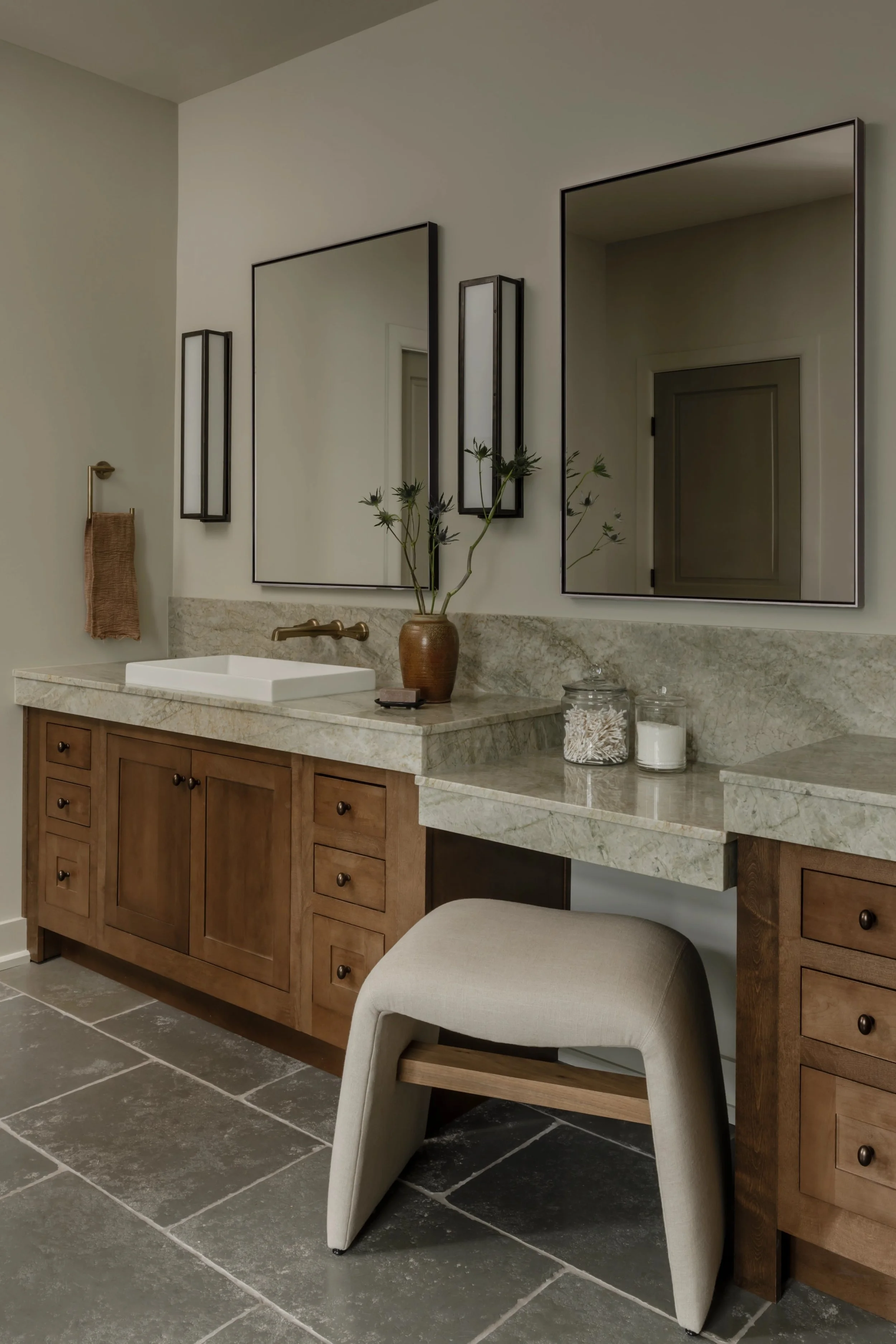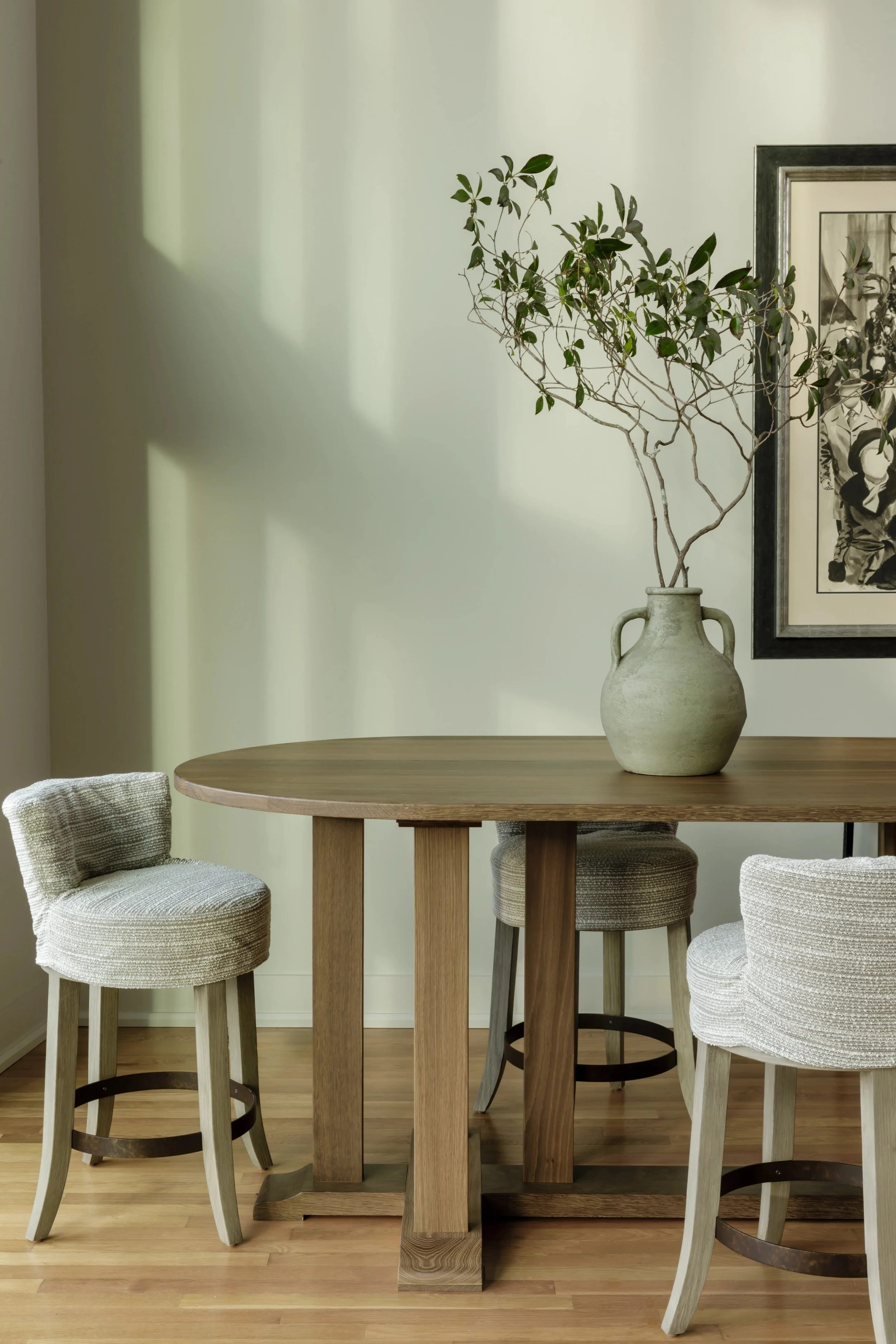 What began as a consultation for a new stair evolved into a full-scale renovation touching nearly every room and redefining how the home is experienced. Originally constructed in phases, the home relied on a spiral staircase as its sole connection between levels. Through a careful study of the existing plan, we uncovered underutilized space on both floors, allowing for the design of a new stair that not only improves circulation but anchors the home architecturally. The reimagined foyer, once terminating at a blank wall, now unfolds into a moment of arrival that feels intentional, open, and inviting. Beyond the stair, the renovation introduces a series of thoughtful spatial shifts. The primary suite was completely reworked, with both the closet and laundry room relocated to better support daily routines, while an additional office was seamlessly integrated into the plan. Overlooking the James River, the home serves as a quiet respite from city life.